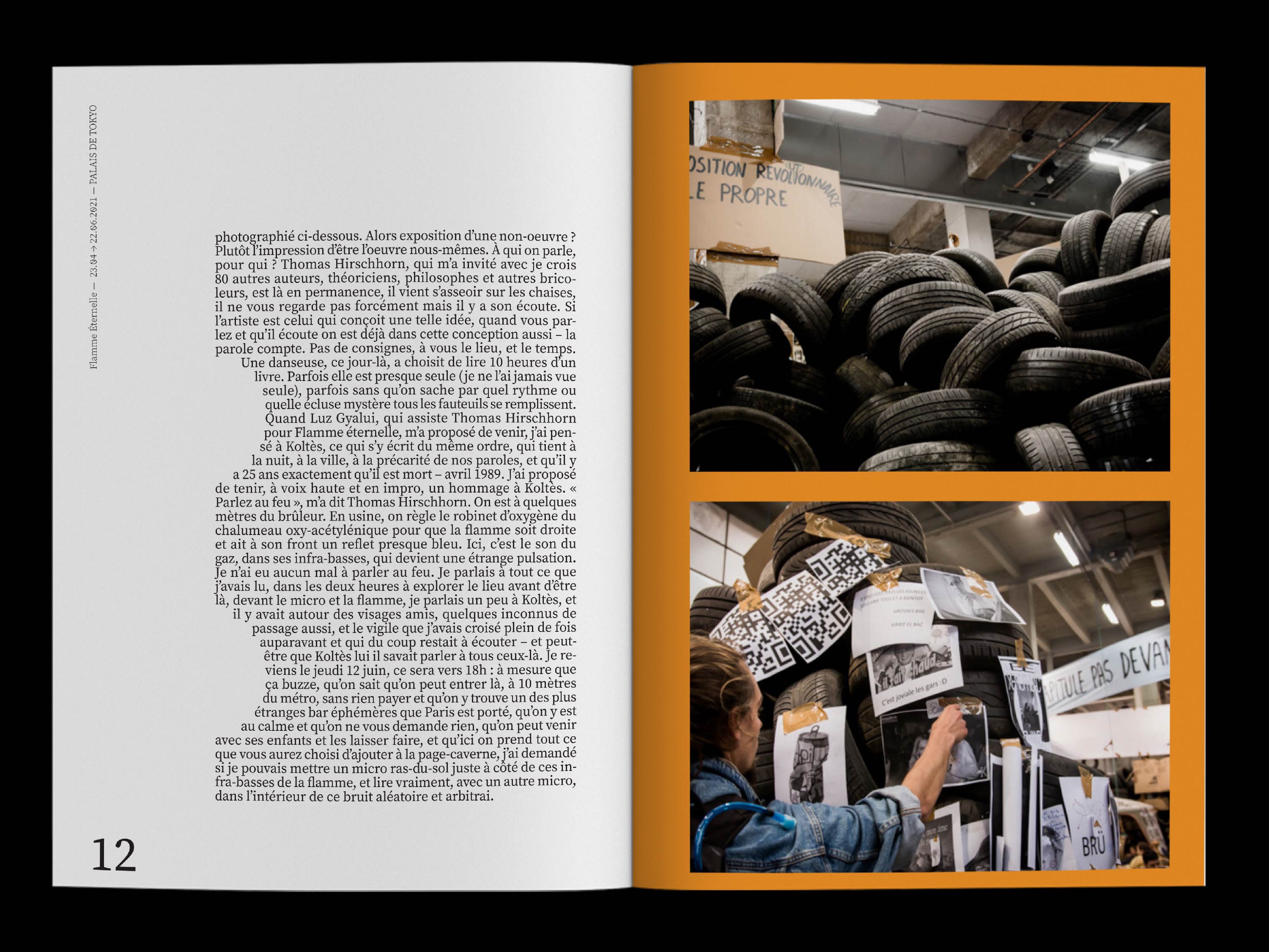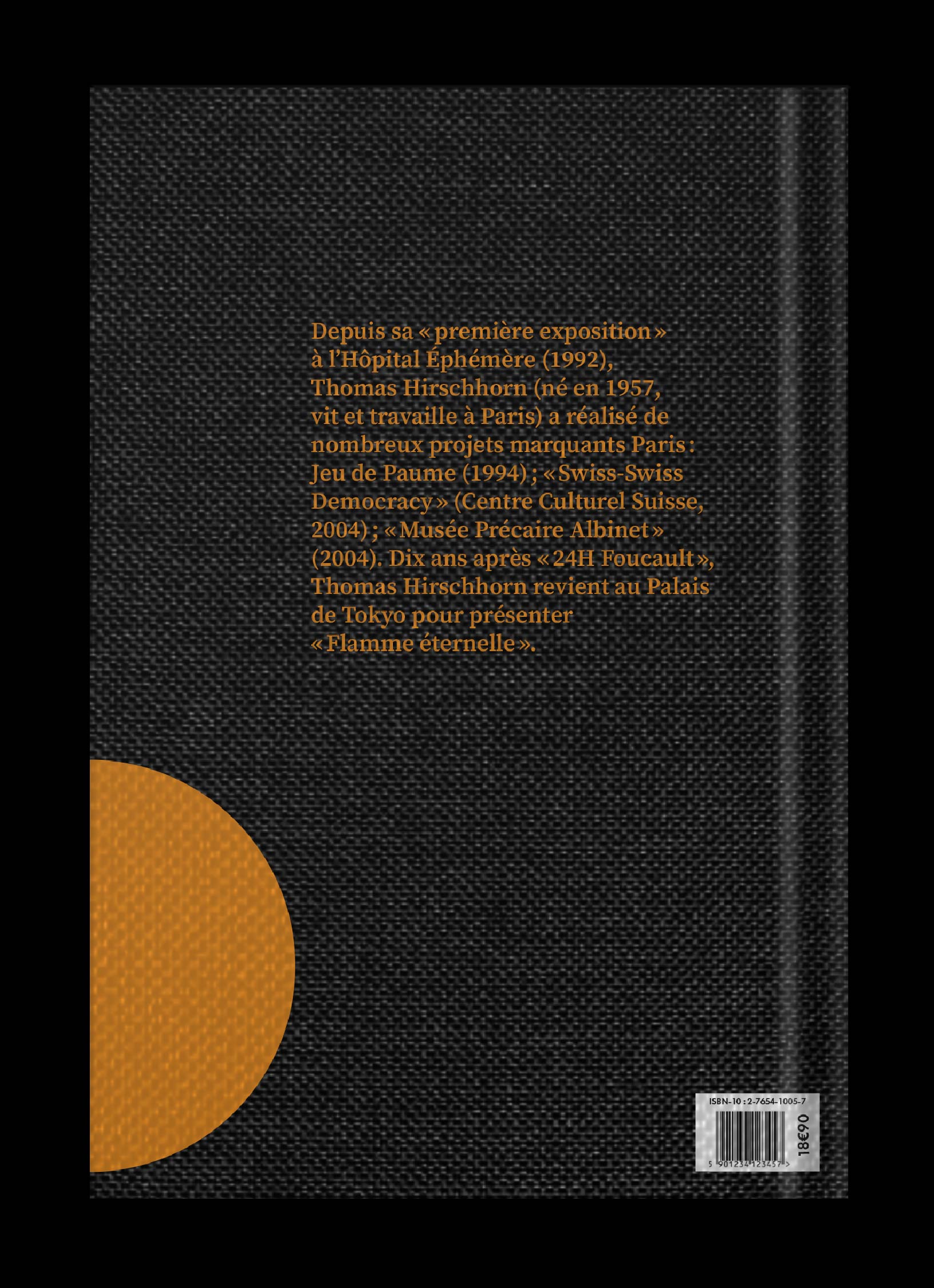Flamme Éternelle est un catalogue d’exposition au format poche. Il présente l’installation de Thomas Hirschhorn – du même nom – au Palais de Tokyo.