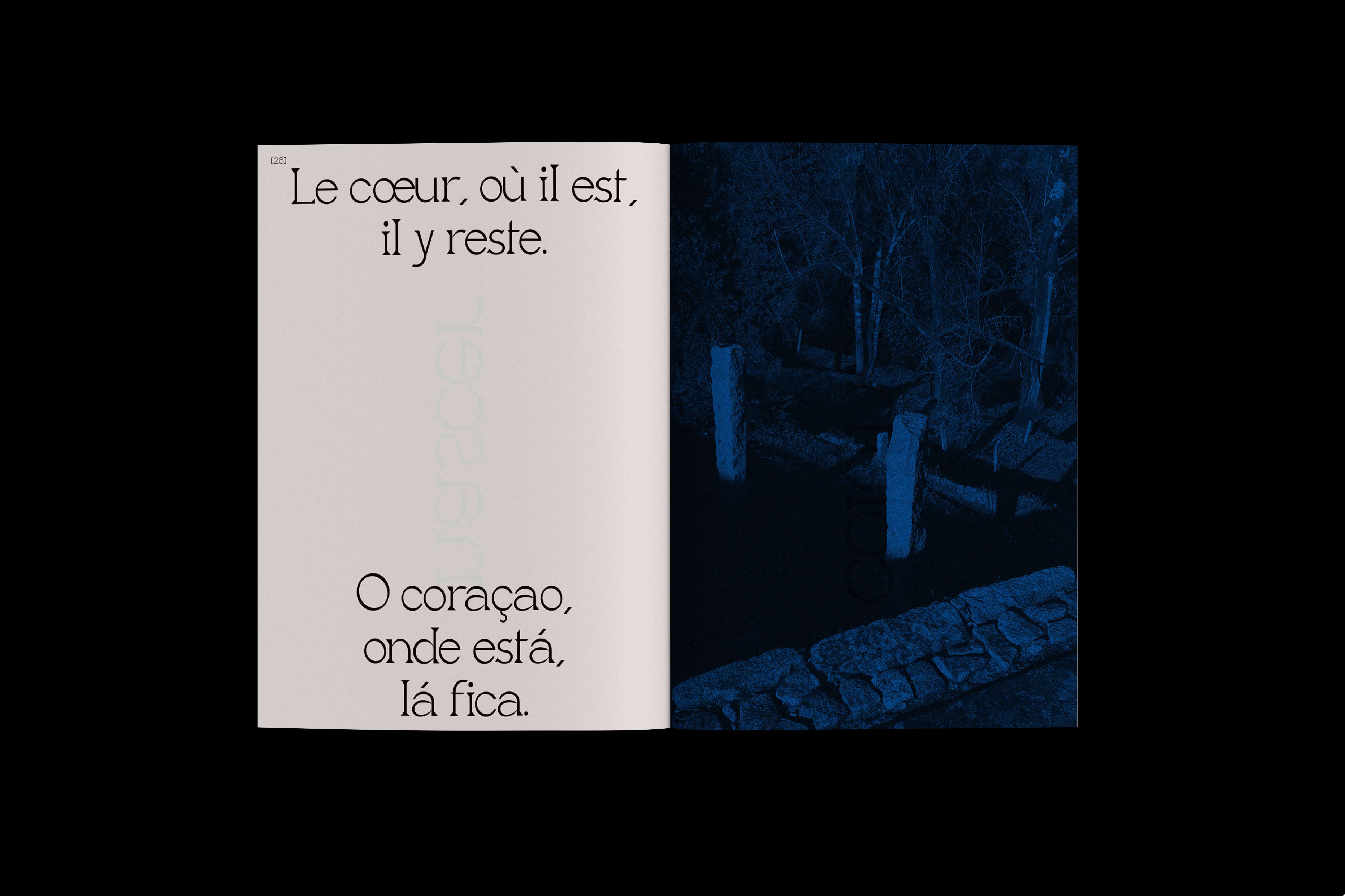 Saudade est une tentative de capter l’intangible : ce sentiment portugais d’un manque doux-amer, d’un temps qui persiste dans les interstices du présent. L’édition devient ainsi un objet-passeur, entre deux langues, deux pays, deux rythmes, un espace pour rêver ce qui fut, ce qui est, ce qui échappe.