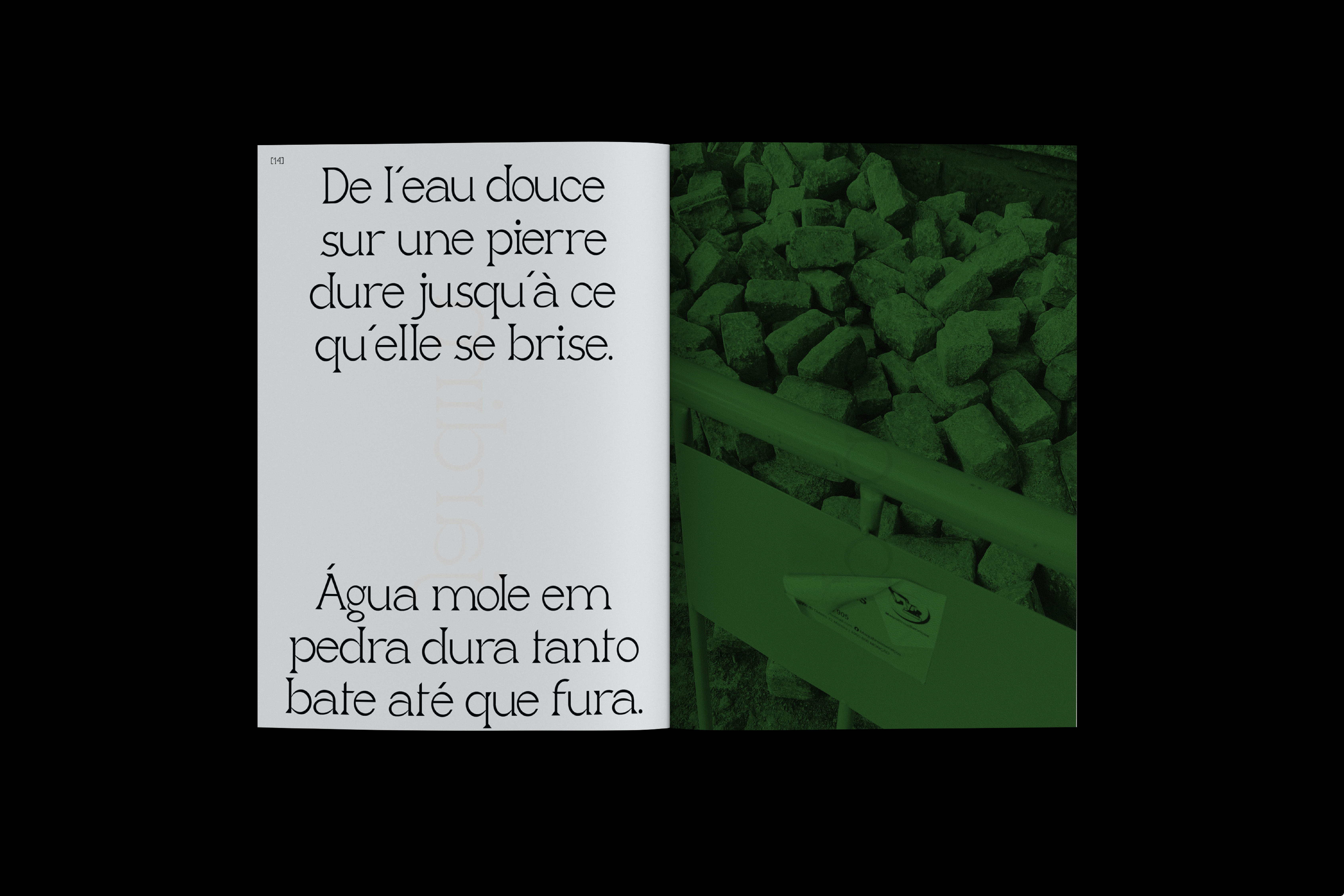Saudade est une édition sensible et introspective qui tisse un dialogue entre mémoire, territoire et forme typographique. Elle naît du besoin de sonder un attachement profond à Monção, ville de mon enfance nichée au nord du Portugal, et plus largement aux paysages du pays qui ont façonné mon regard et ma sensibilité graphique.