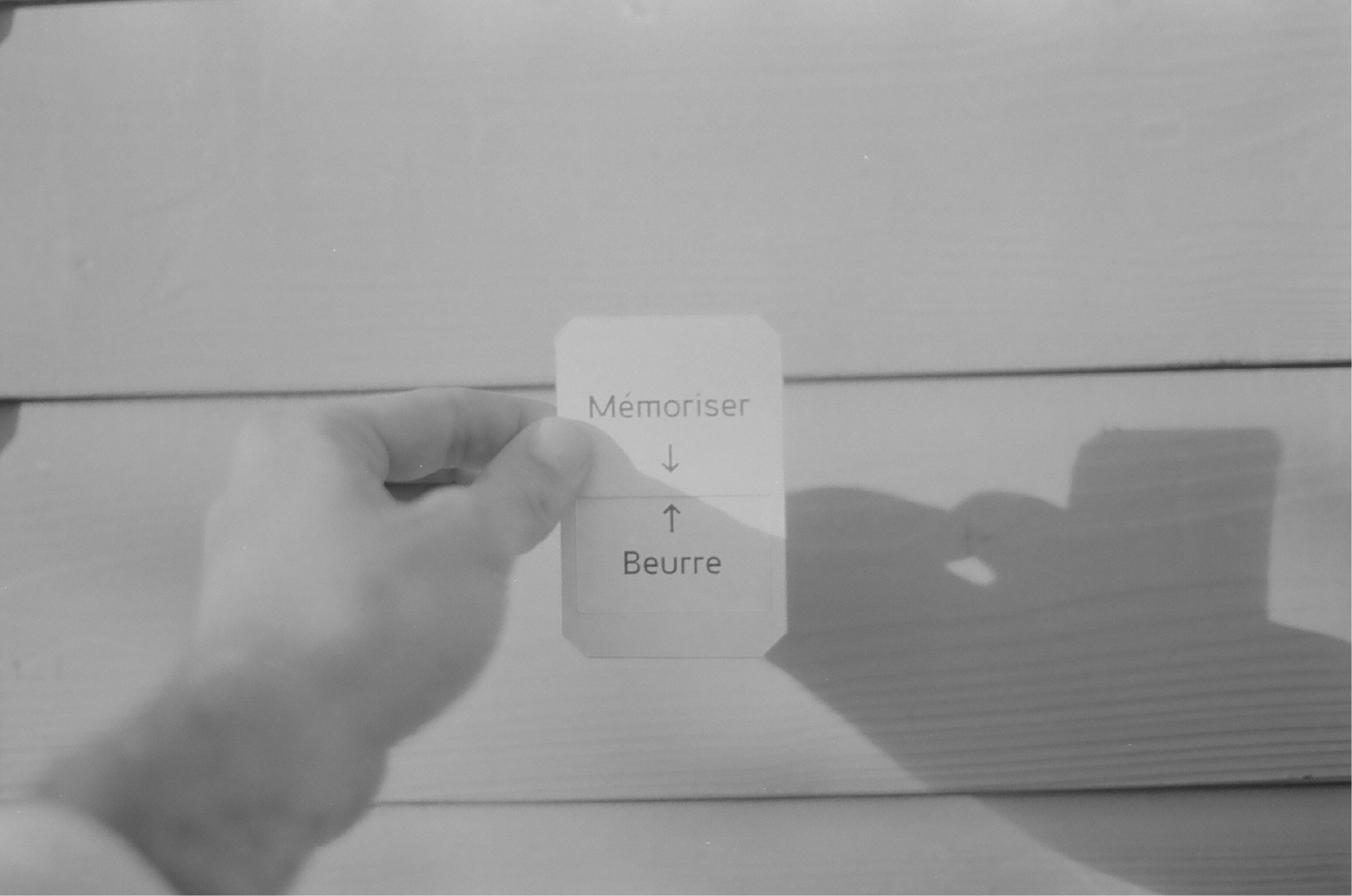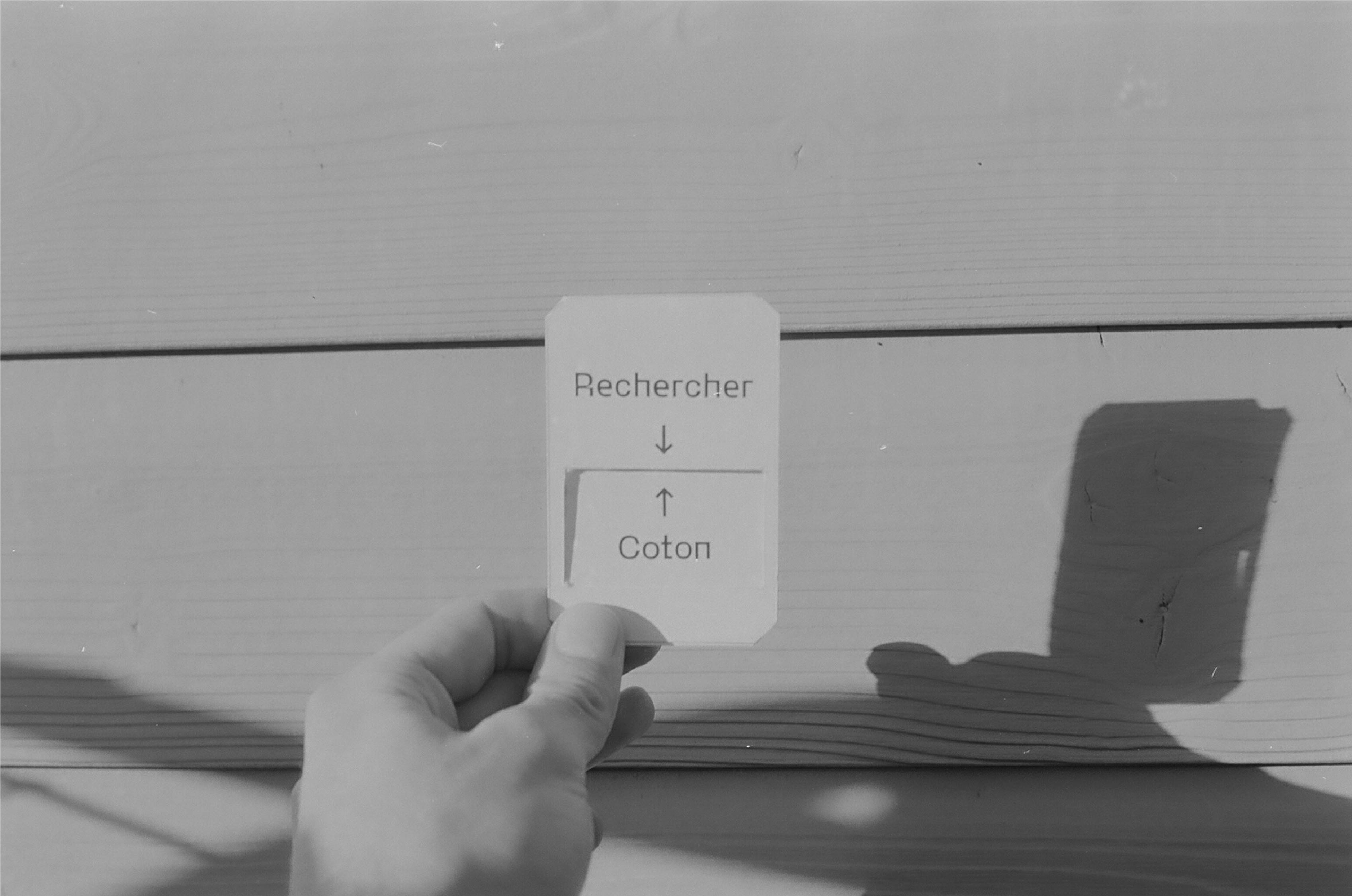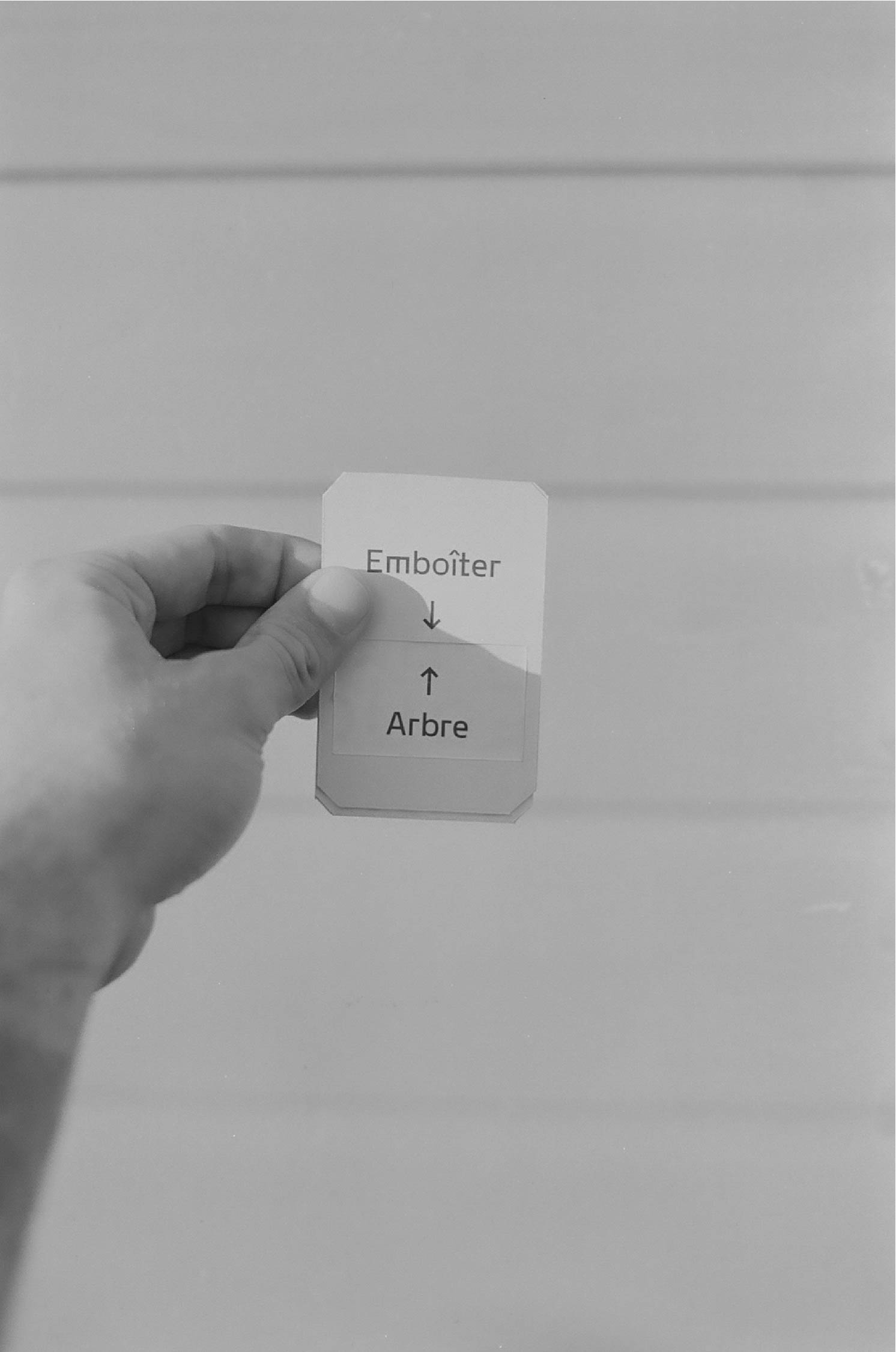 Le processus créatif se déroule ainsi : tirer une carte d’un verbe d’action puis, tirer une carte d’un nom d’objet, d’une matière, d’un lieu. Une association se crée, une réflexion s’engage. Interroger