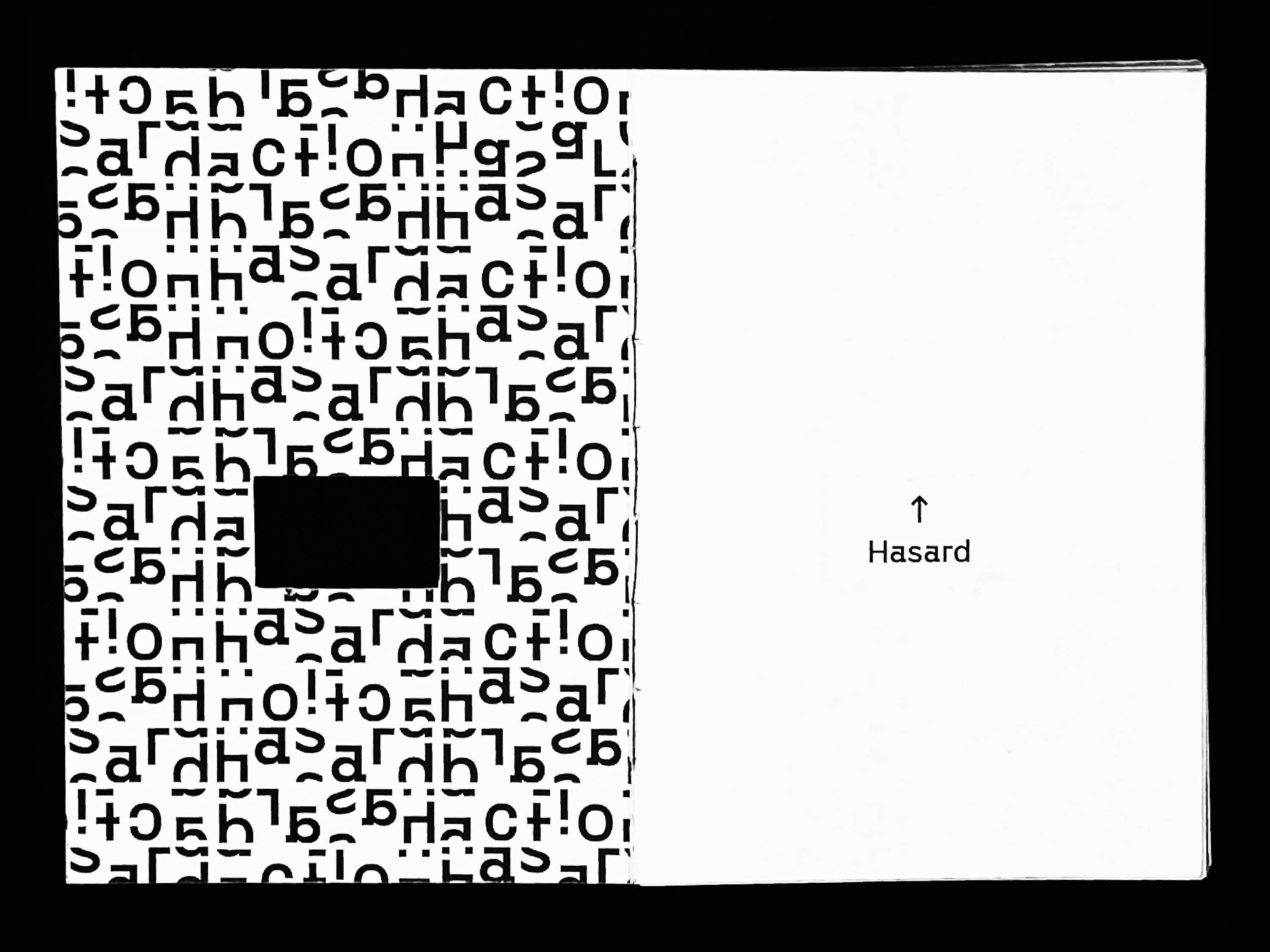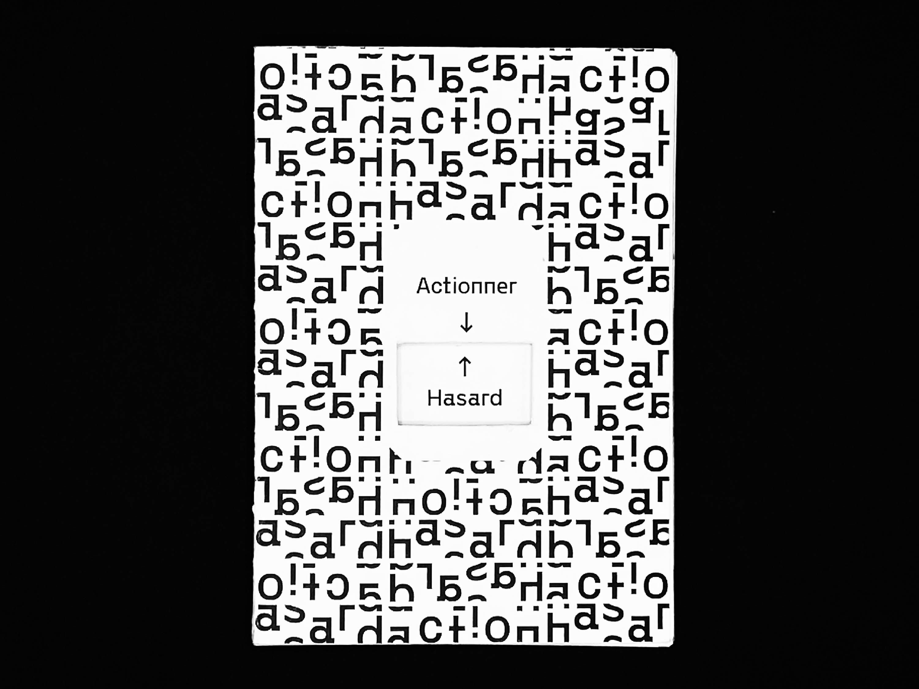 Actionner Hasard est un projet bi-éditorial – jeu de cartes et édition restitutoire 12 x 17 cm en reliure copte artisanale à la main – qui a pour but de jouer du hasard et de ses probabilités.