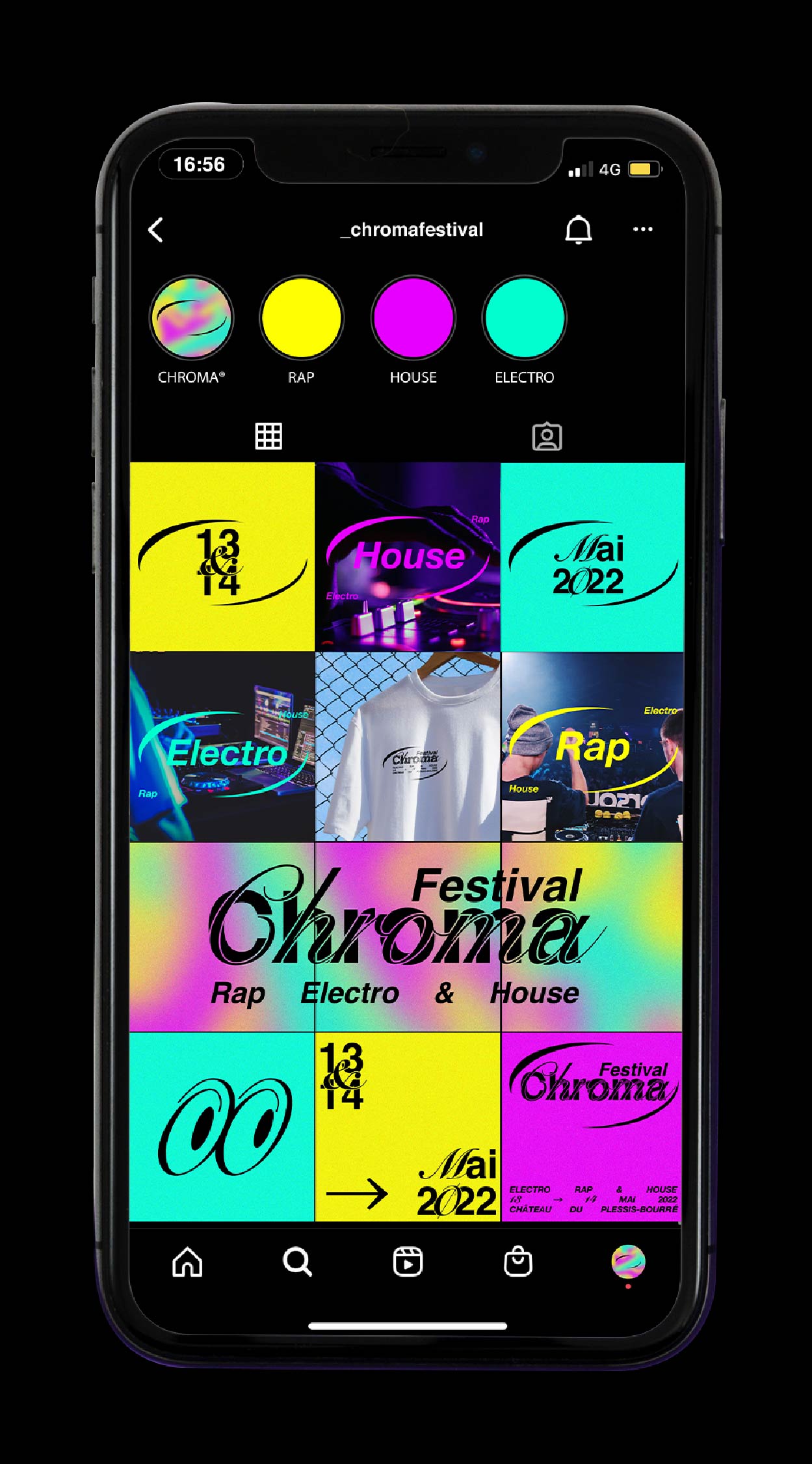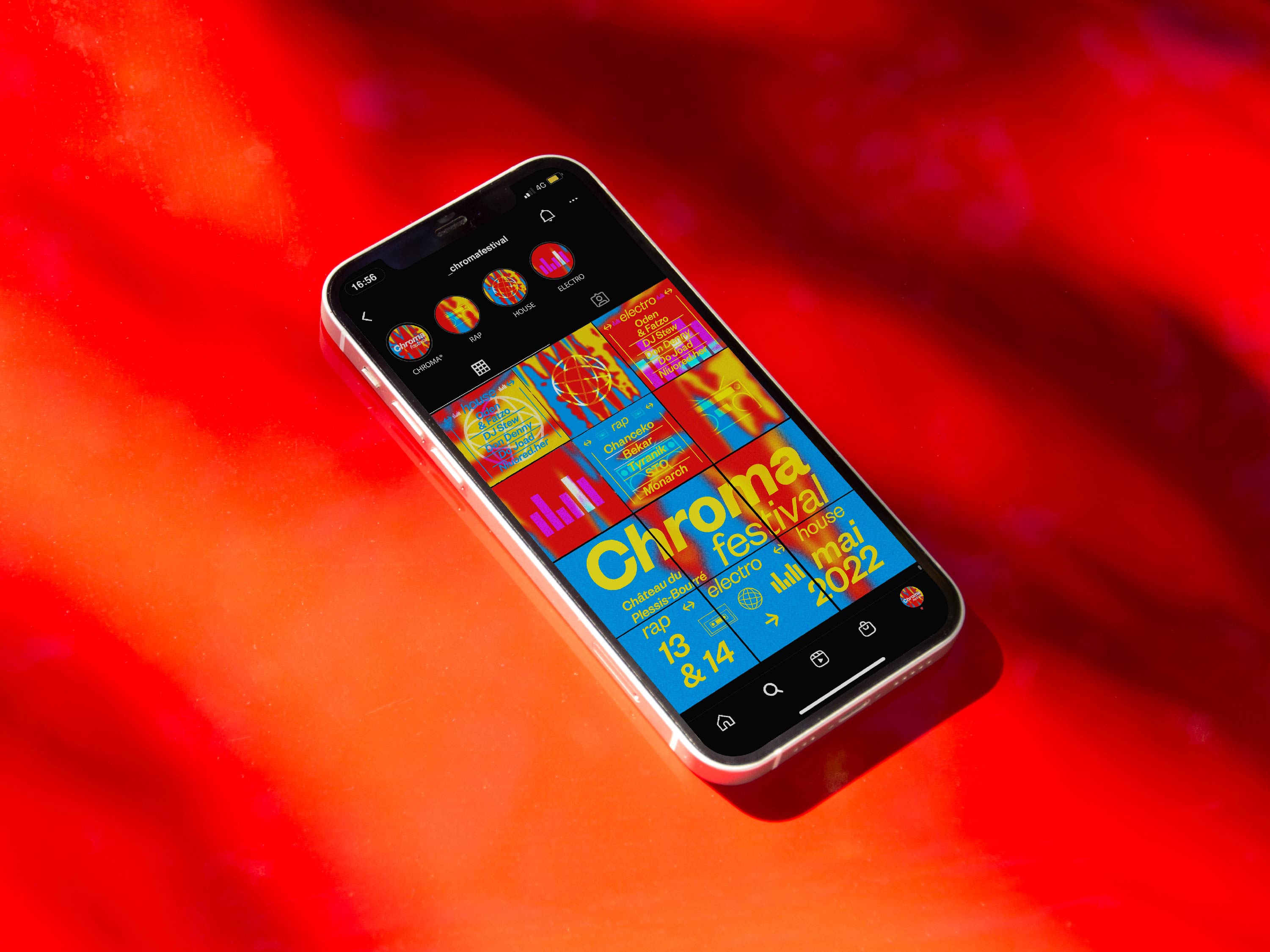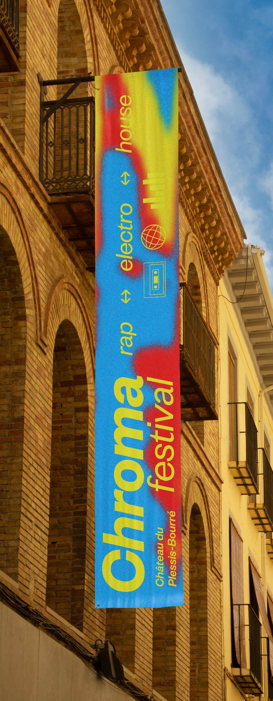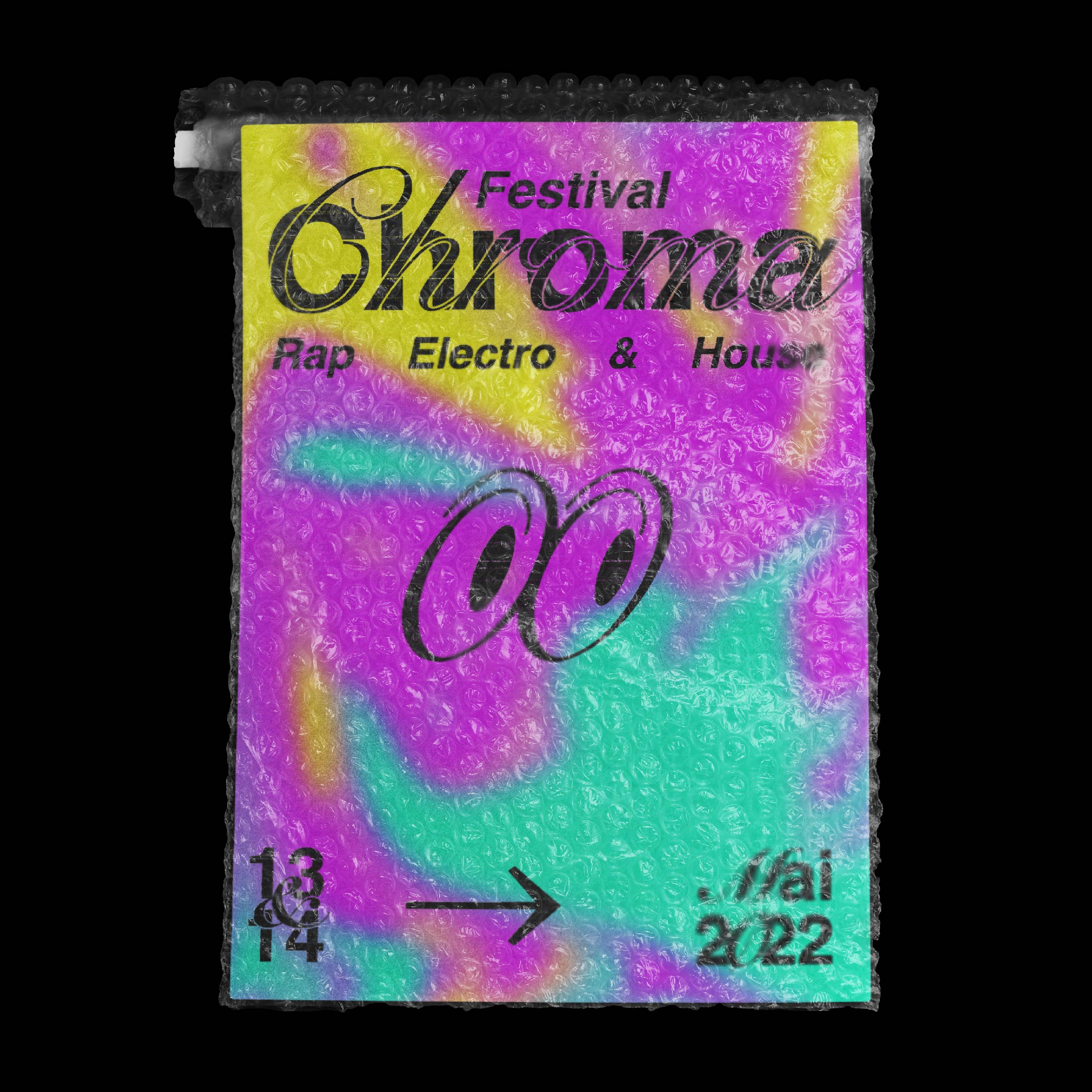 Pour sa première et sa seconde édition, les organisateurs du Chroma Festival m’ont fait appel afin de réaliser l’identité graphique de ce dernier. Lors de sa première édition au printemps 2022, il a résidé les 6 & 7 mai au château du Plessis-Bourré à Écuillé (49). Je leur ai proposé trois pistes de réflexions, qui leur ont permis de se projeter, afin de construire ensemble une imagerie qui reflète l’univers musical de ce festival.