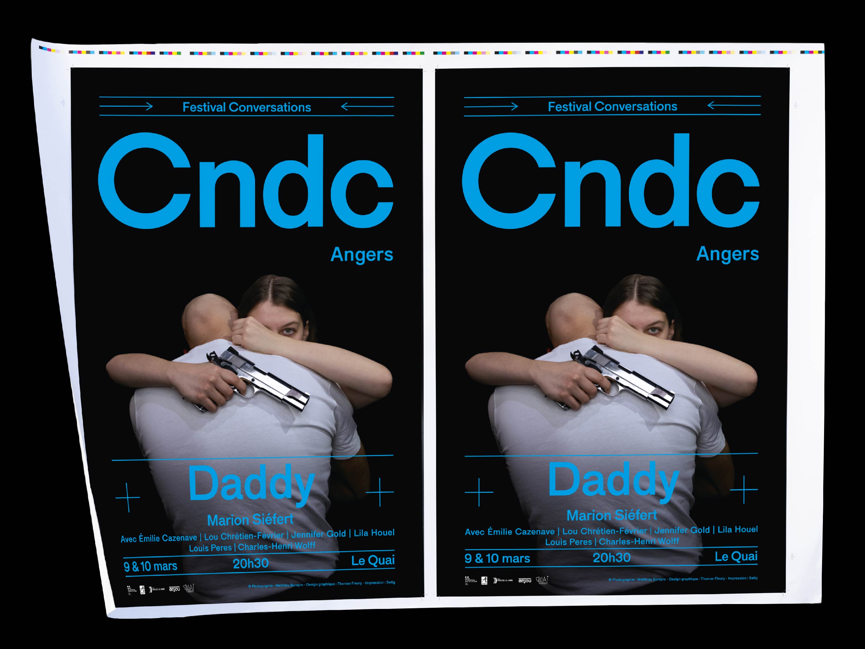 Conception et réalisation de l'affiche de Daddy composé par Marion Siéfert et coécrit avec Matthieu Bareyre, pour sa première représentation au théâtre Le Quai à Angers.