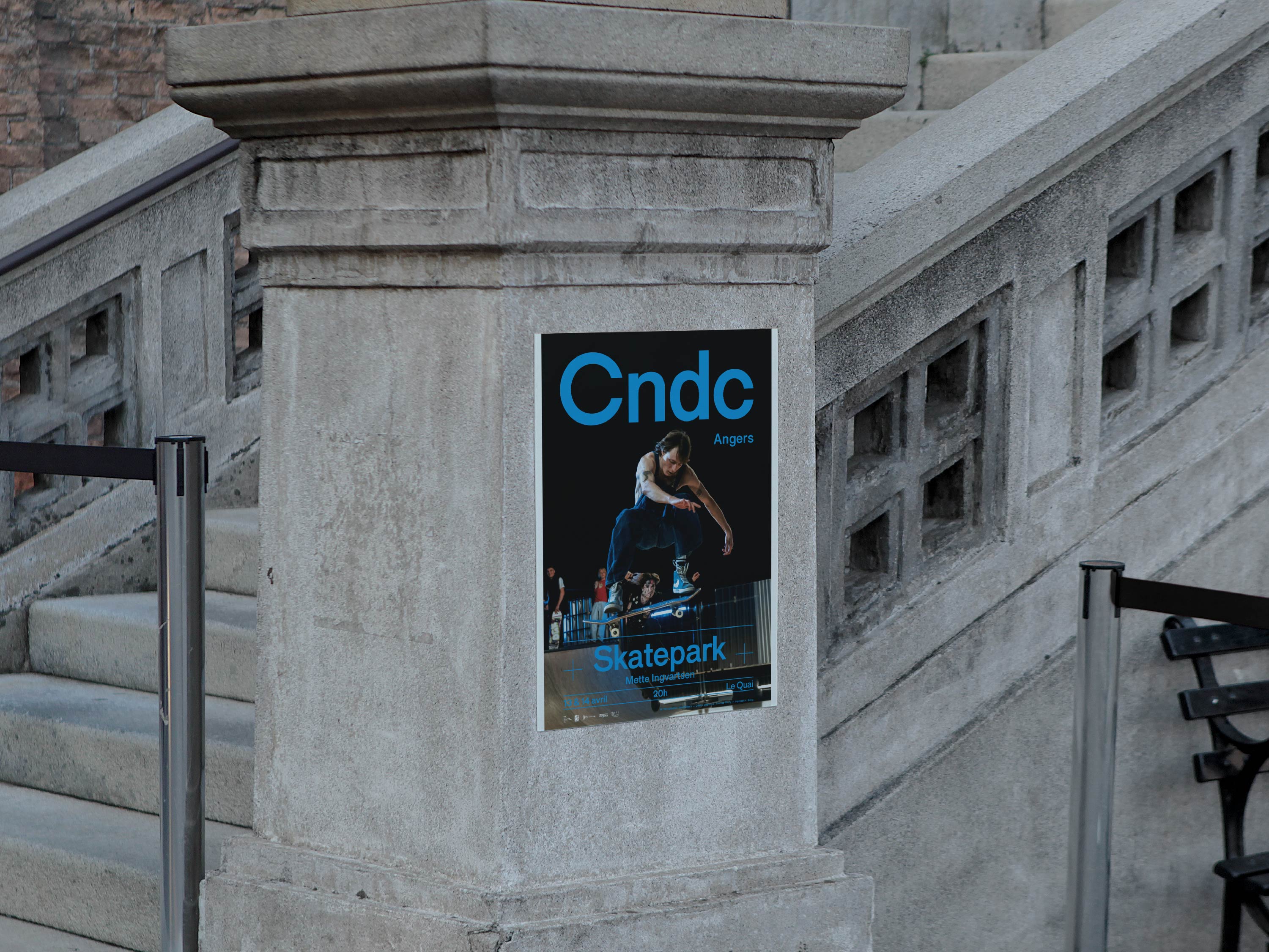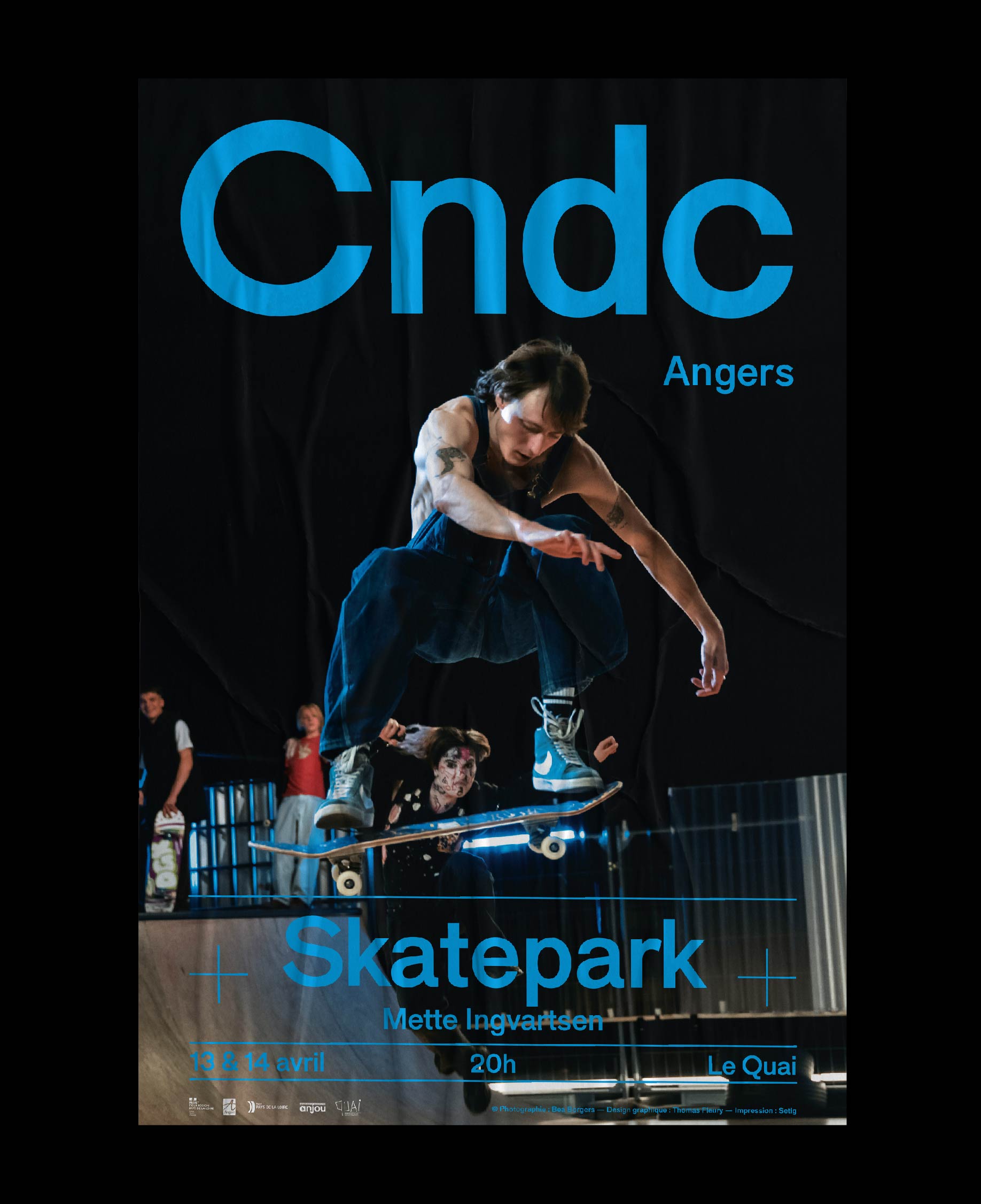 Conception et réalisation de l'affiche de Skatepark composé par Mette Ingvartsen, pour sa première représentation au théâtre Le Quai à Angers.