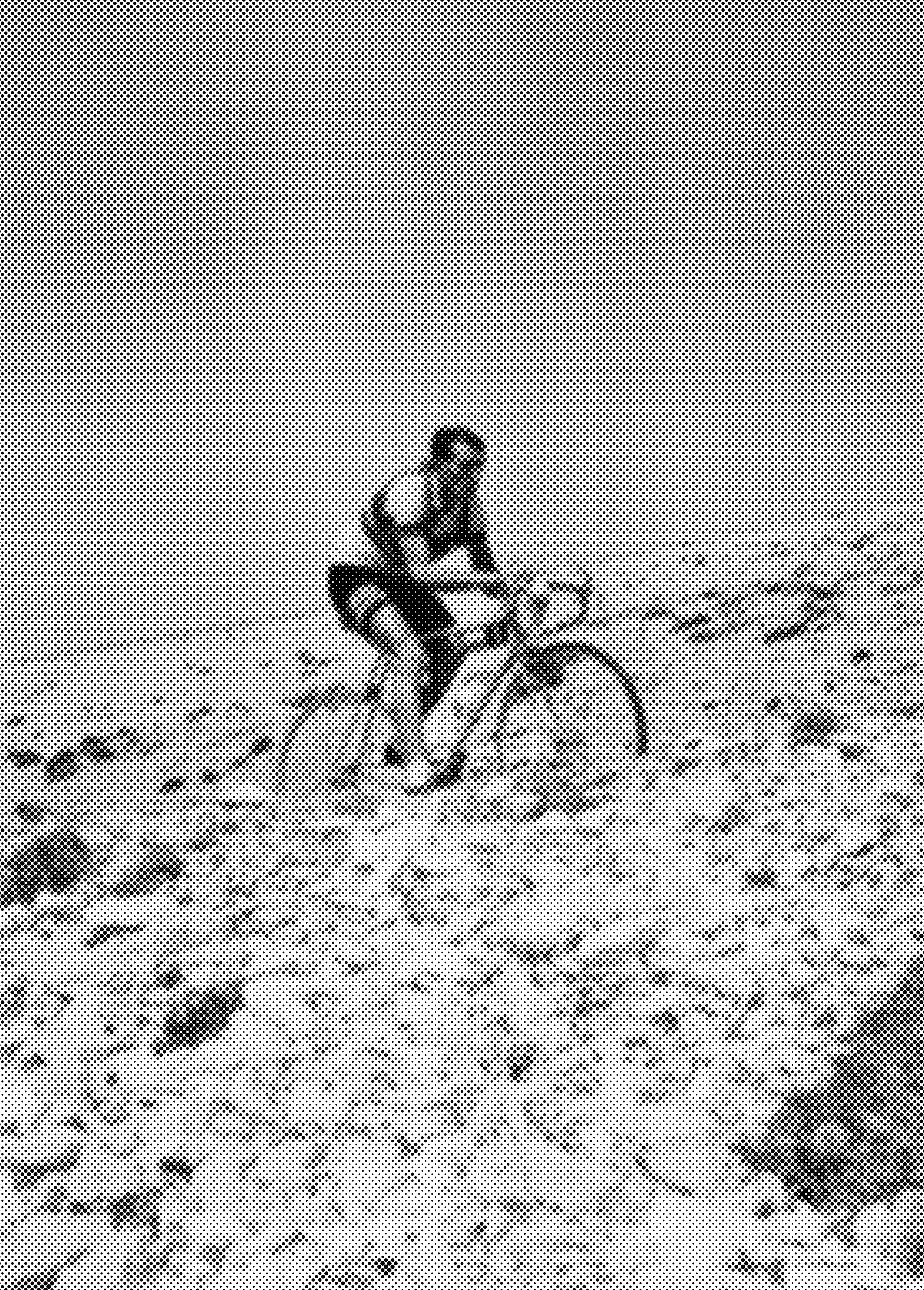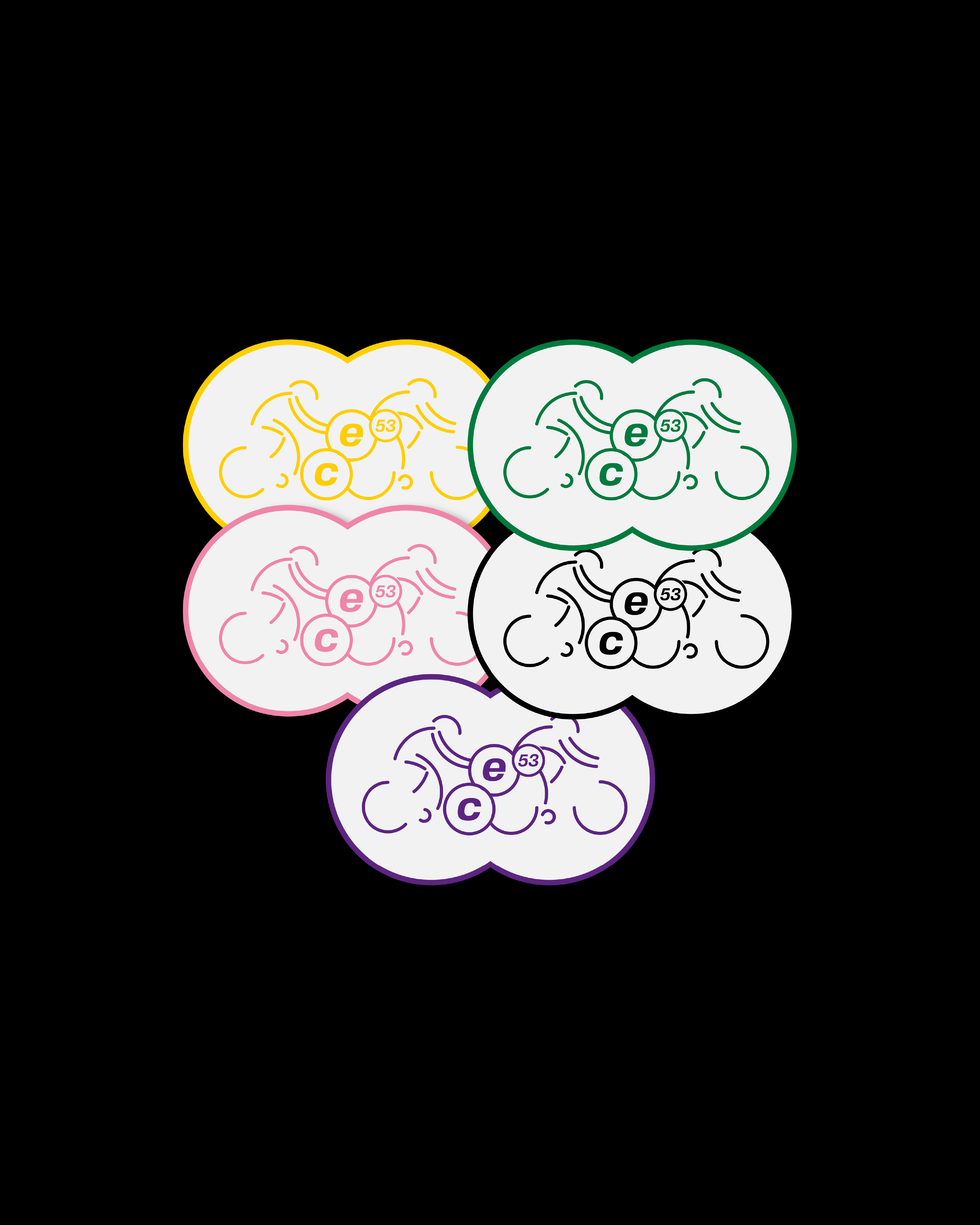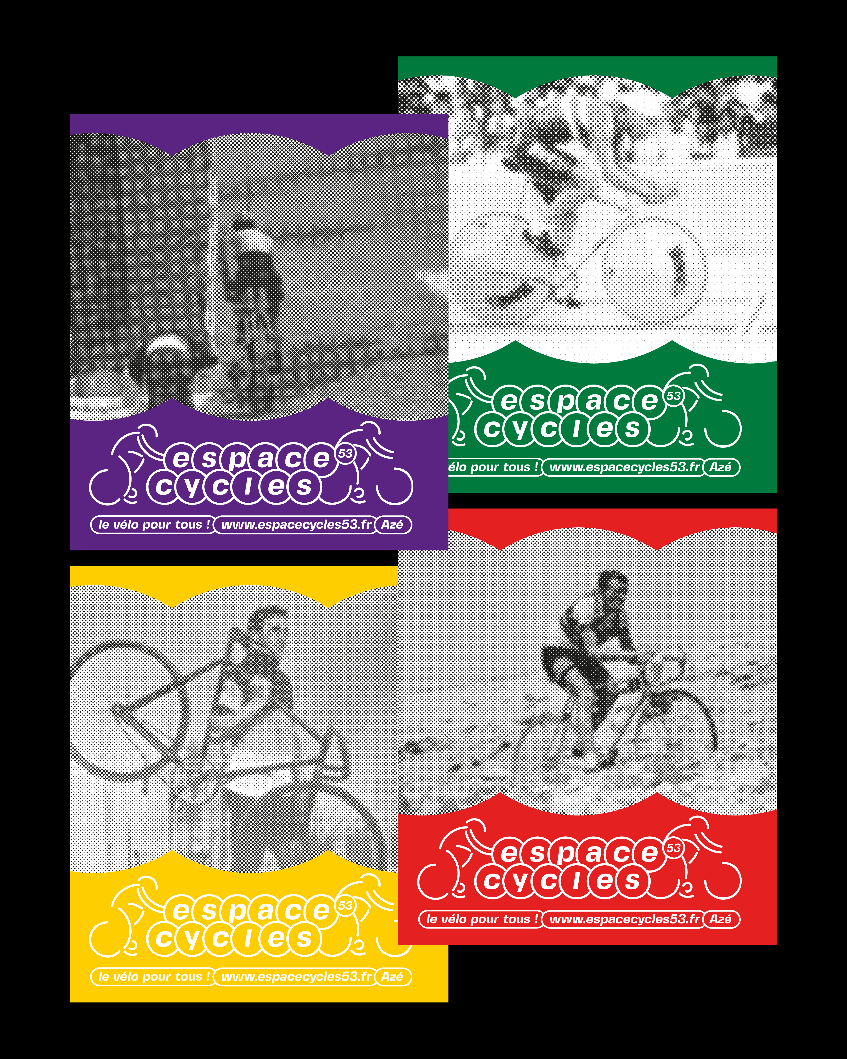 Orienté vers la droite, le graphisme évoque l’élan, la progression, l’entrée et l’échappée. La typographie Fivo en italique accentue cette sensation de vitesse et d’élan, soutenue par un signe figuratif représentant deux cyclistes — l’un qui rejoint, l’autre qui s’élance.