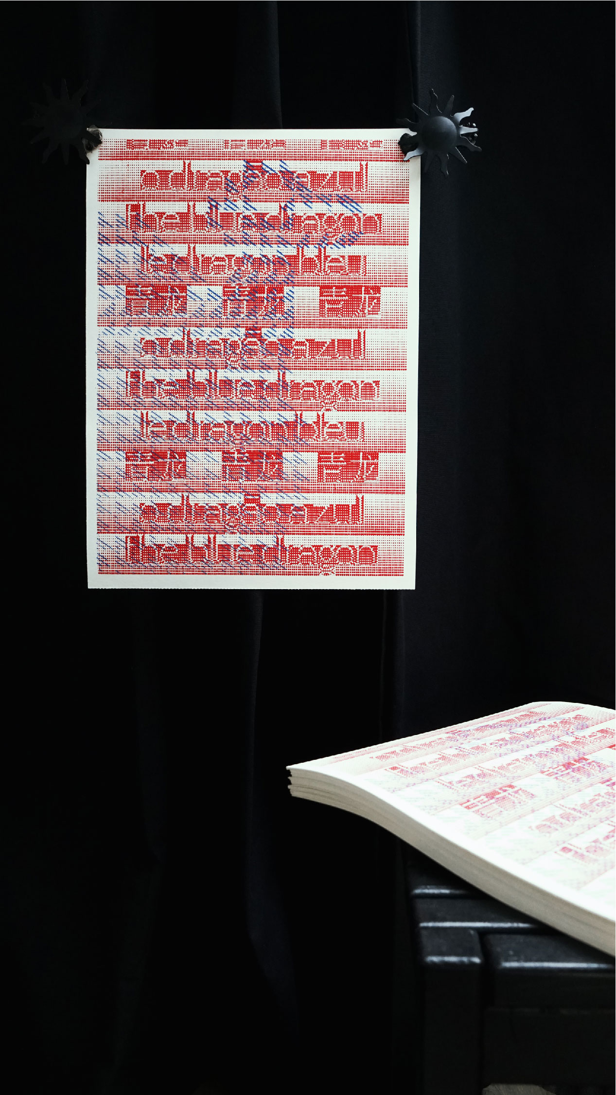 Réalisation d’affiches imprimées en sérigraphie et en bichromie pour le nouvel an Chinois 2024, qui est sous le signe du dragon. Chaque année, un des cinq éléments est associé à un animal. En 2024, l'élément bois est associé au signe du Dragon : c'est celui qui grandit. Cette année, la typographie Minerai, utilisée ici pour le titrage, est encore en phase de dessin et d’ajustement. Elle va évoluée, elle va grandir, s’échapper à d’autres formats.