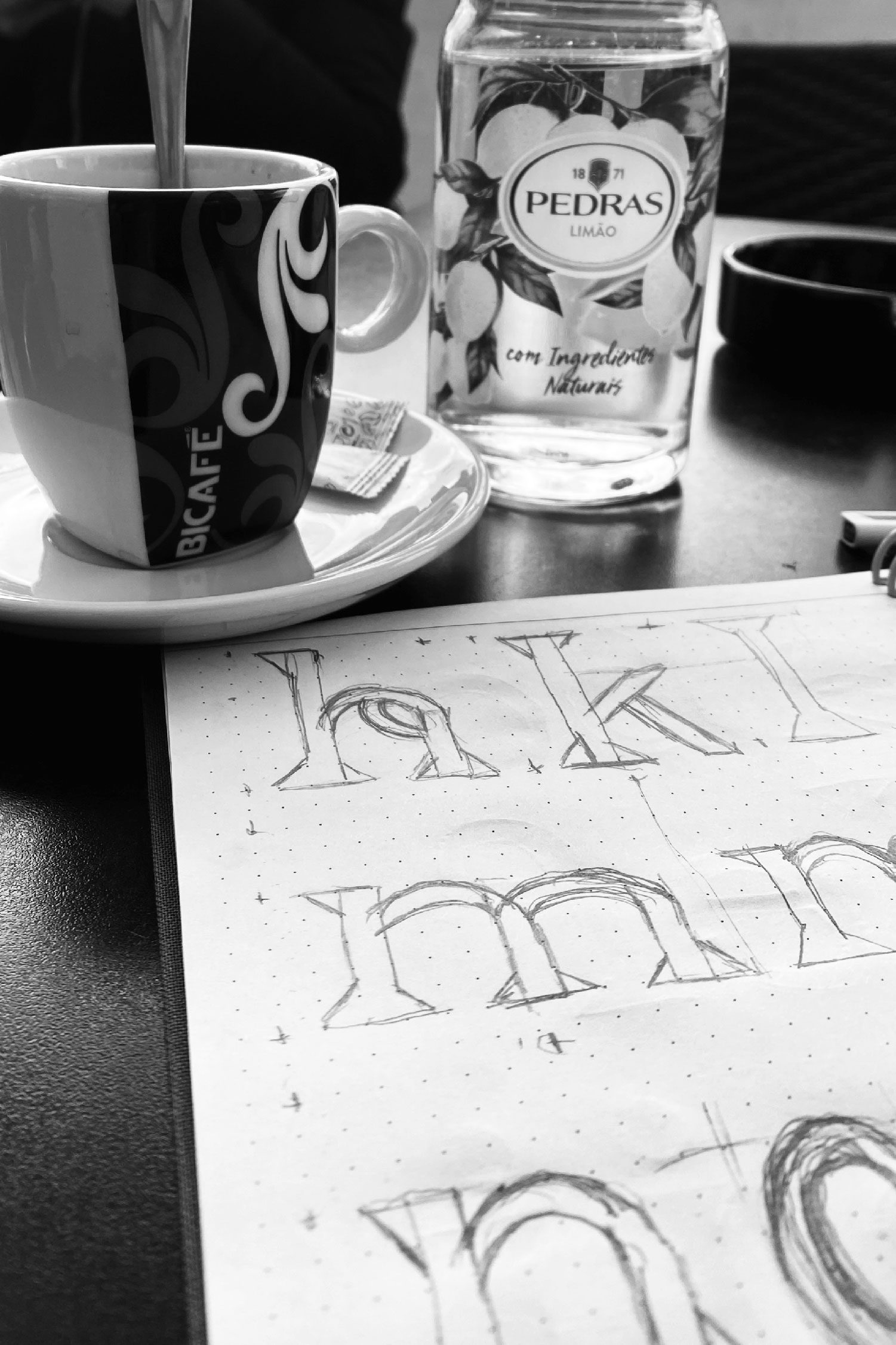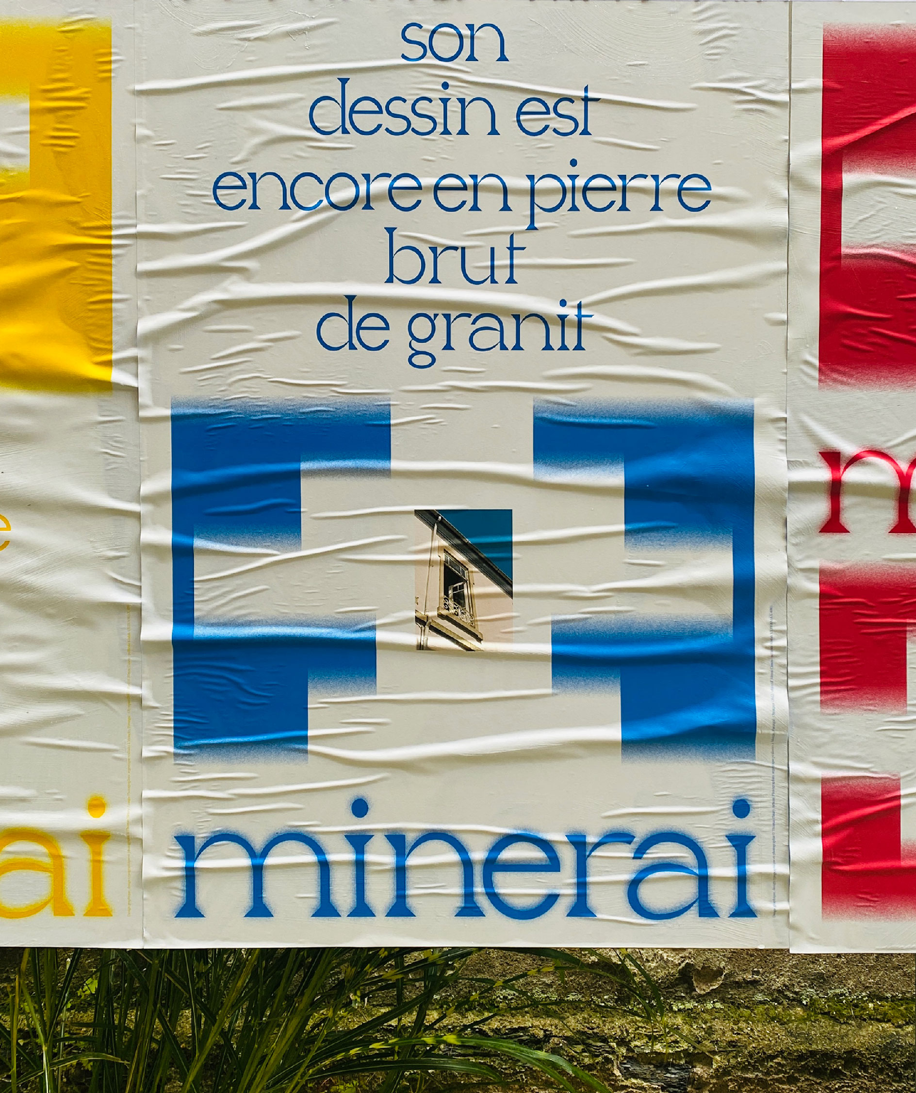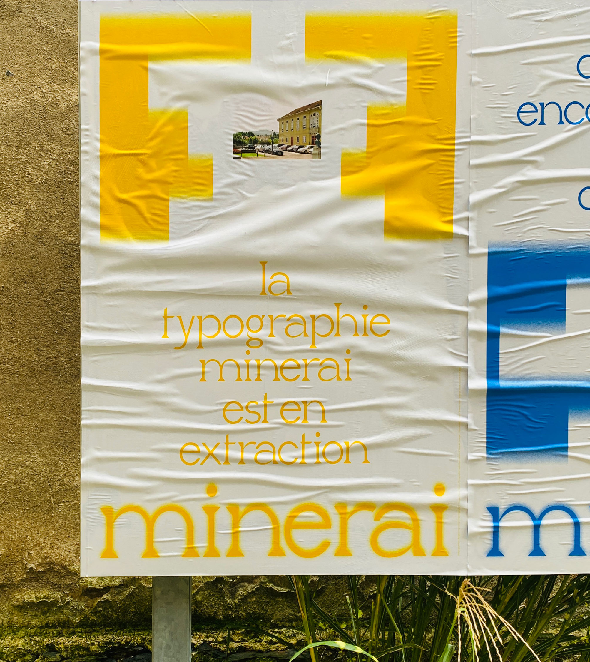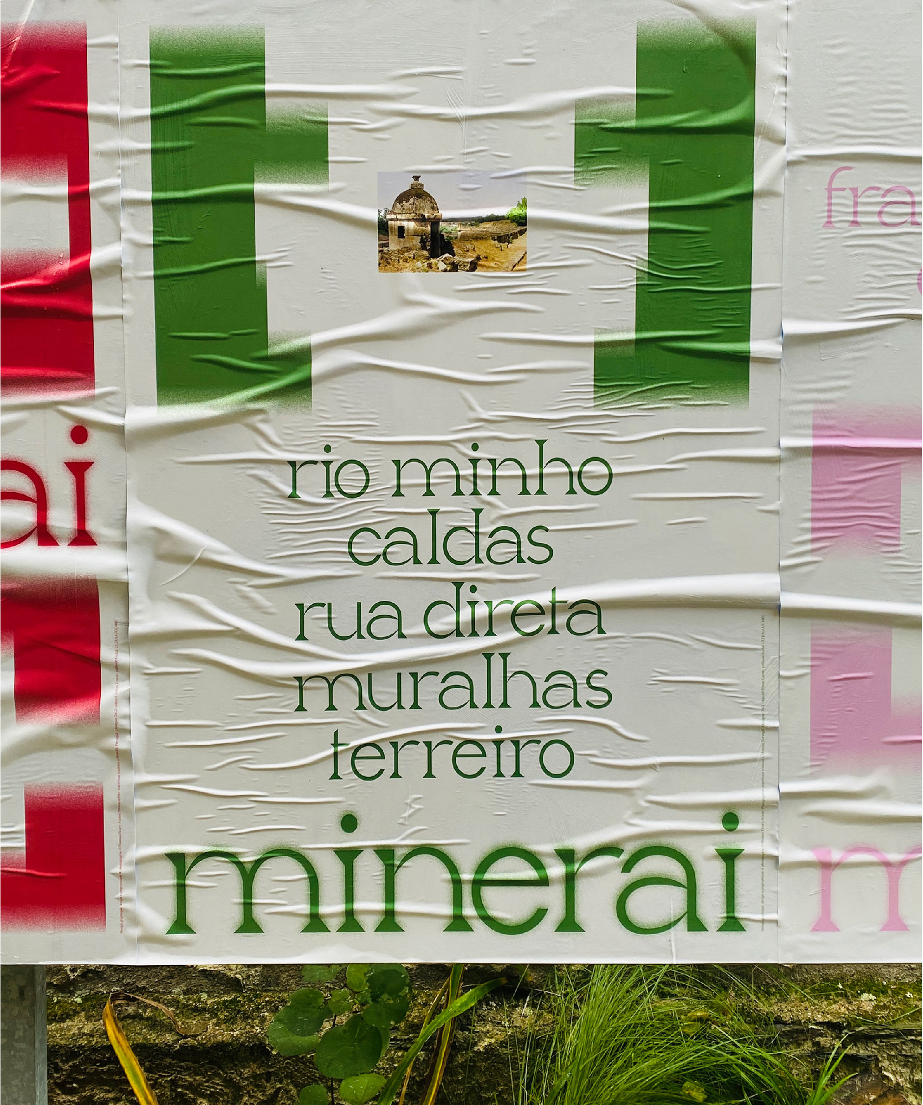 Pour inaugurer la nouvelle zone d’affichage libre à l’atelier-Angers, nommée PAFF, j’ai mis à l’honneur la typographie Minerai. Cette fonte s’inspire des enchevêtrements des blocs de granits qui fortifient le village de mon enfance, Monção, au Portugal. Je lui donne la force et la robustesse que m’inspire les remparts de Monção — muralhas — en lui conférant un dessin fort, robuste et brut, tout en donnant aux spécimens qui s’y prêtent, des courbes humaines et douces qui évoquent la poésie qui se dégage de ce village.
