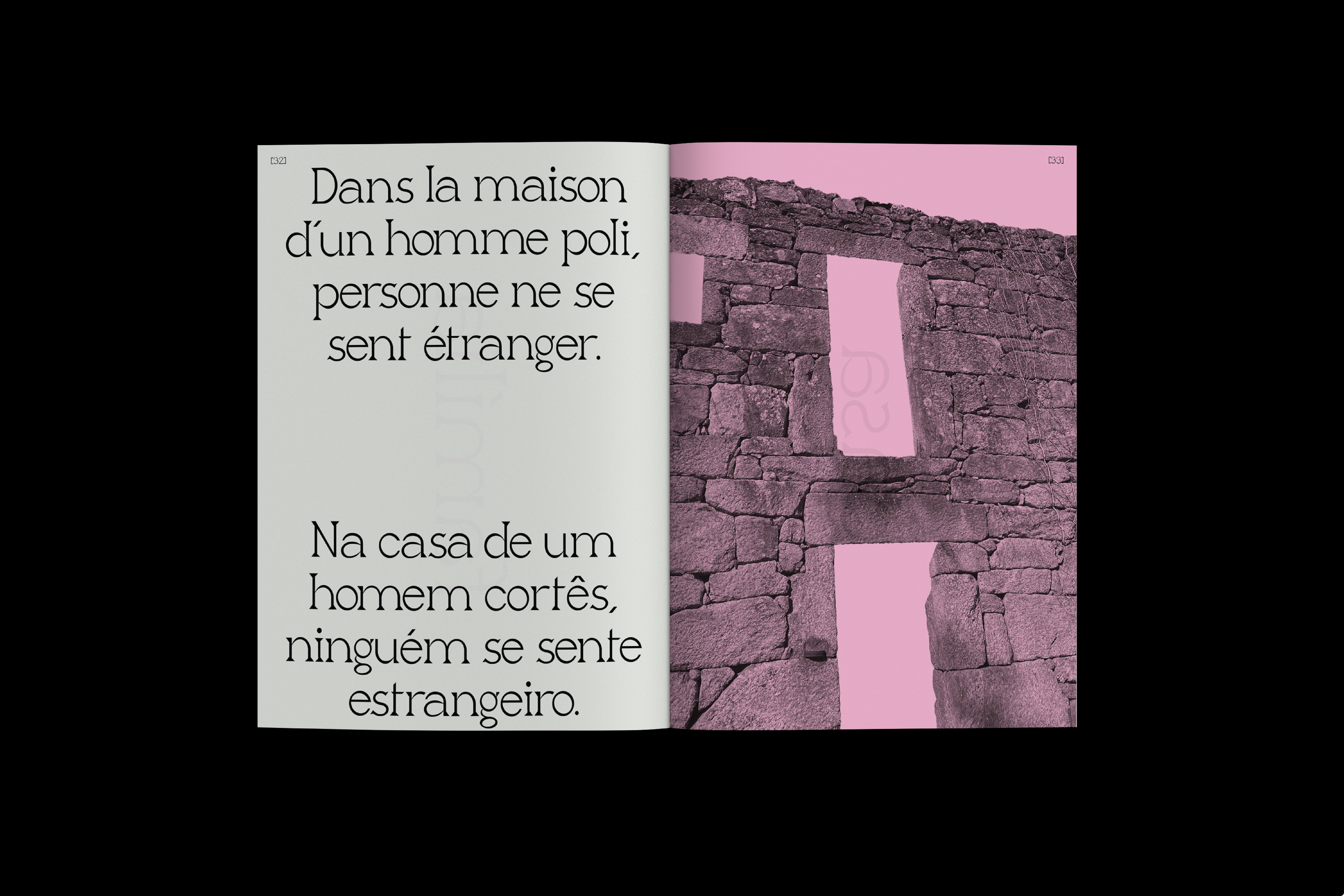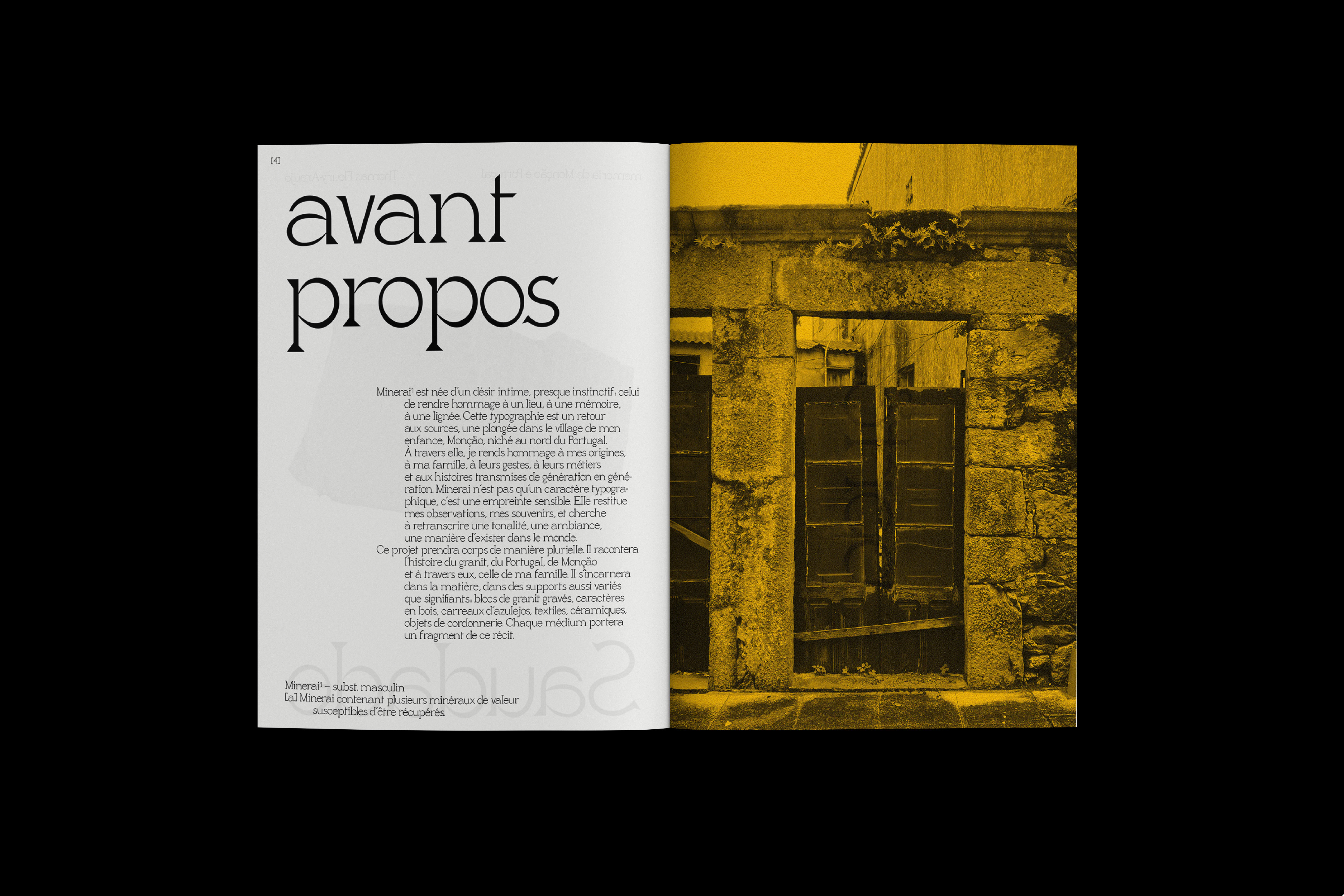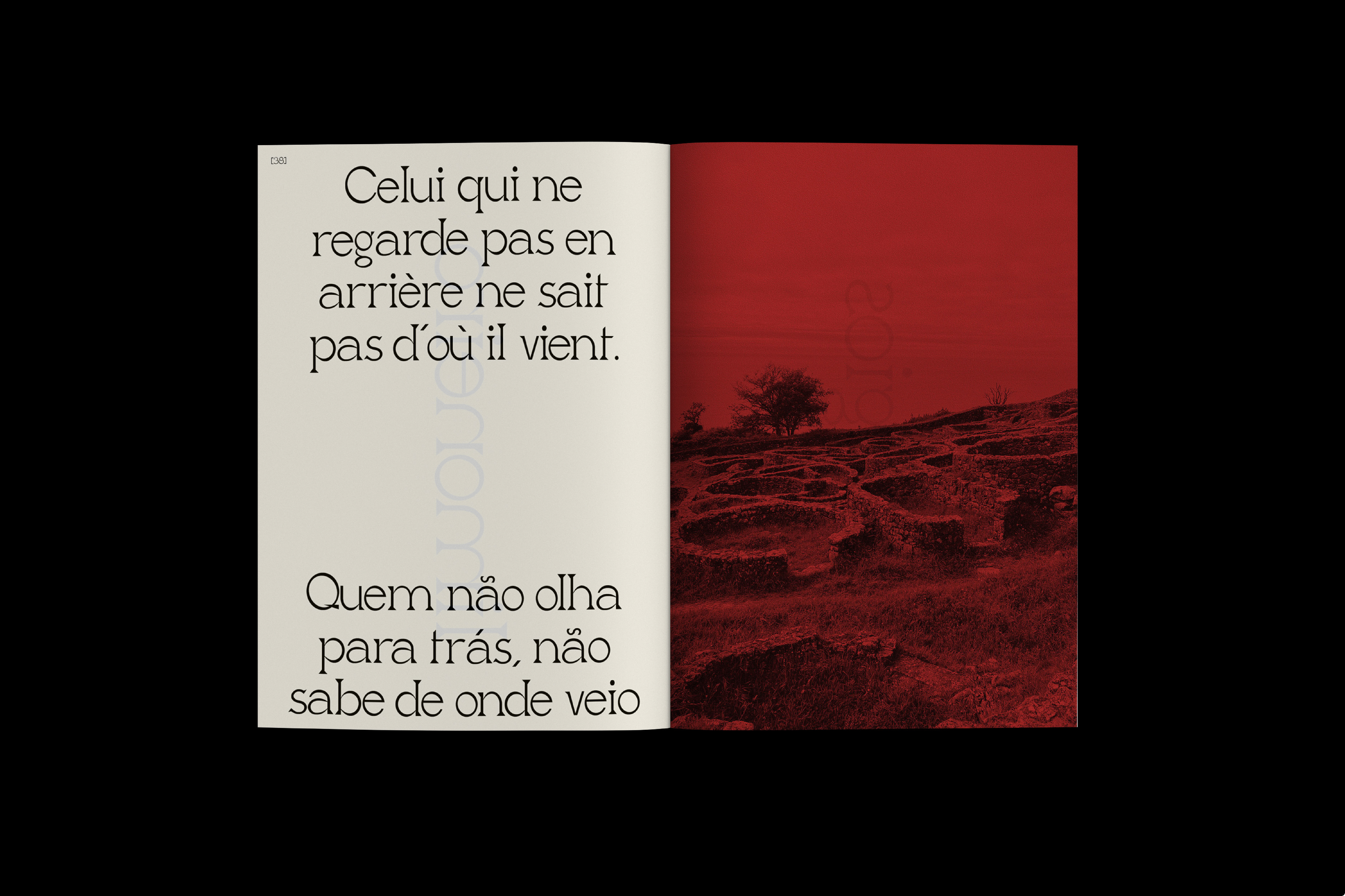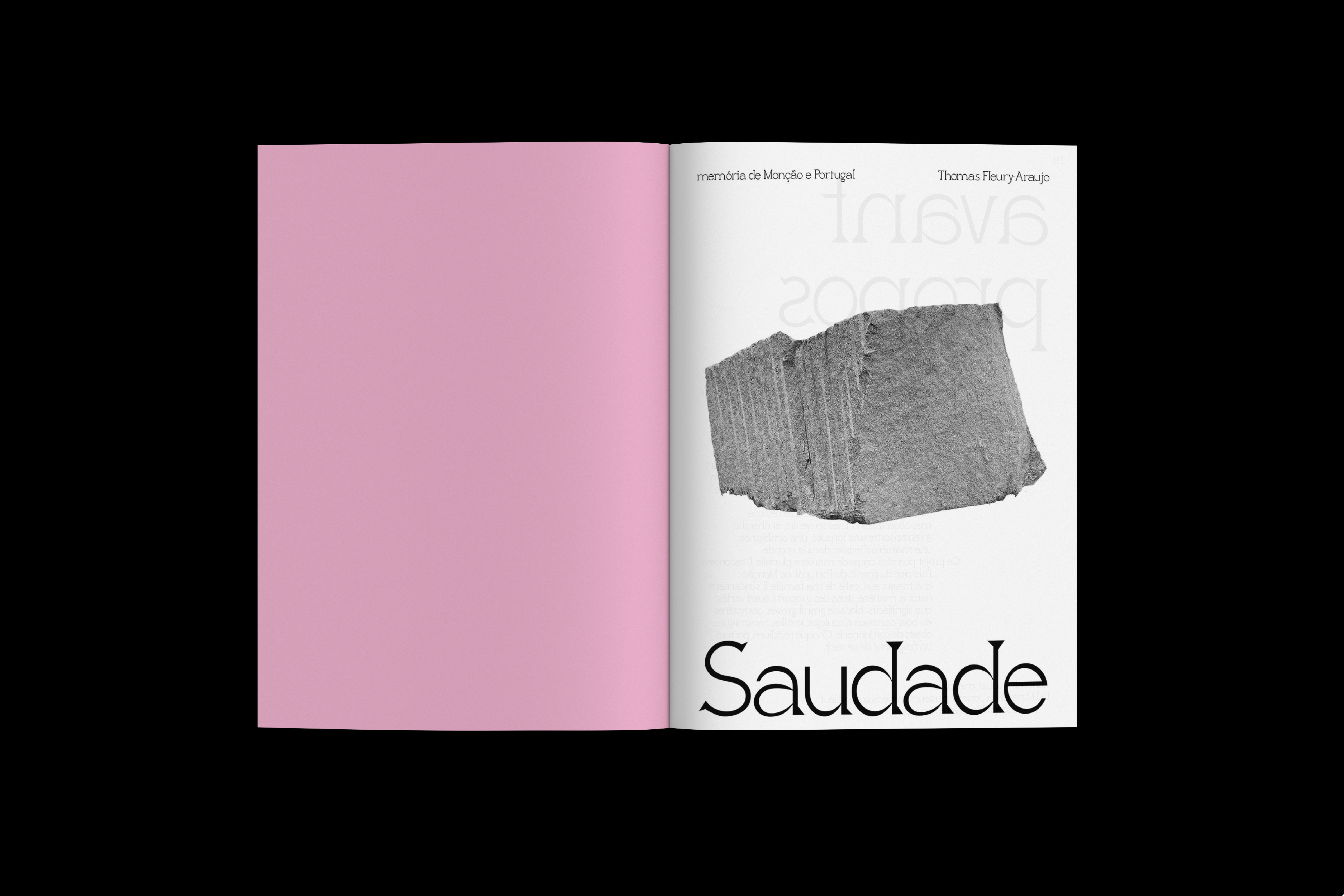 Saudade est une édition sensible et introspective qui tisse un dialogue entre mémoire, territoire et forme typographique. Elle naît du besoin de sonder un attachement profond à Monção, ville de mon enfance nichée au nord du Portugal, et plus largement aux paysages du pays qui ont façonné mon regard et ma sensibilité graphique.